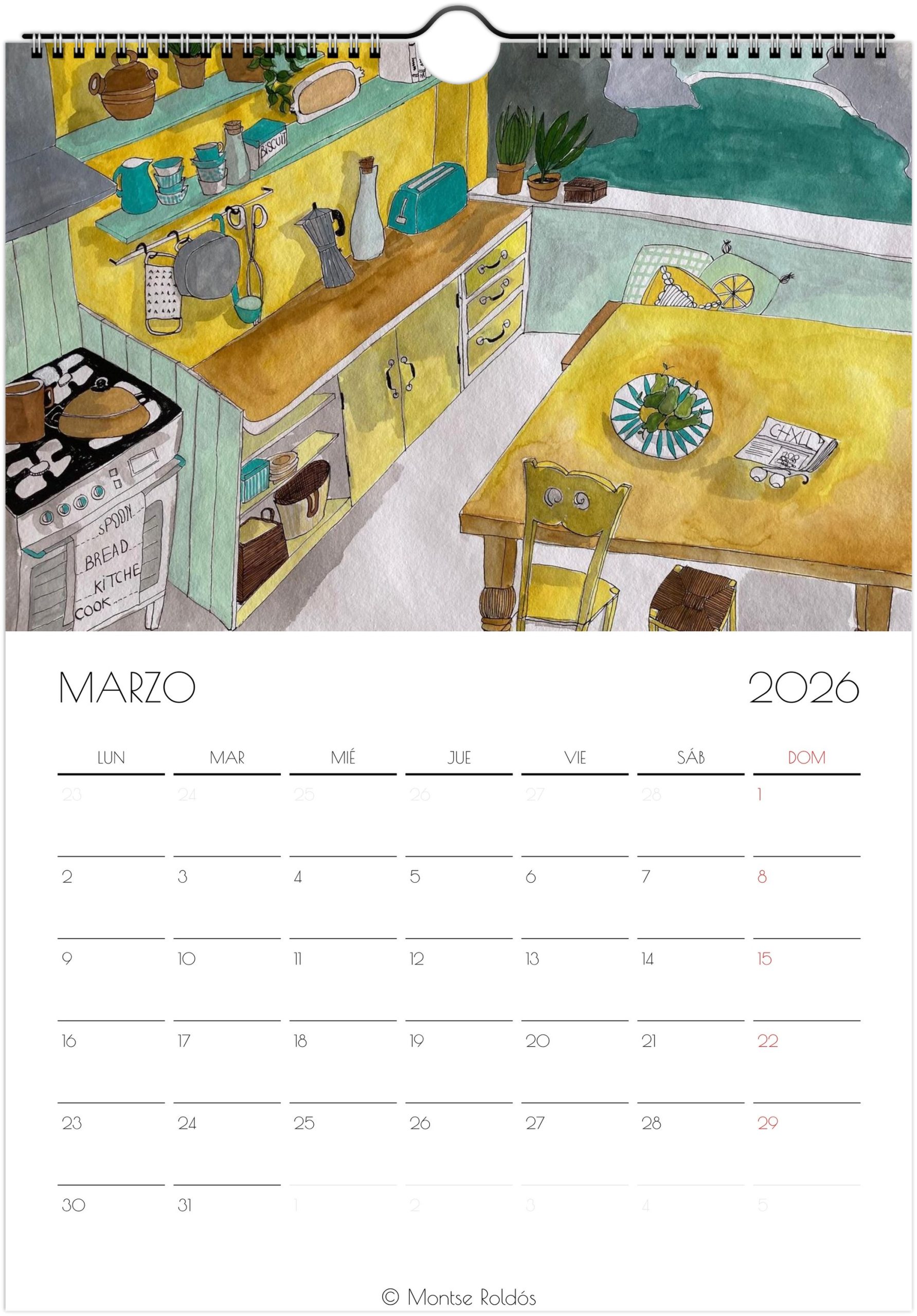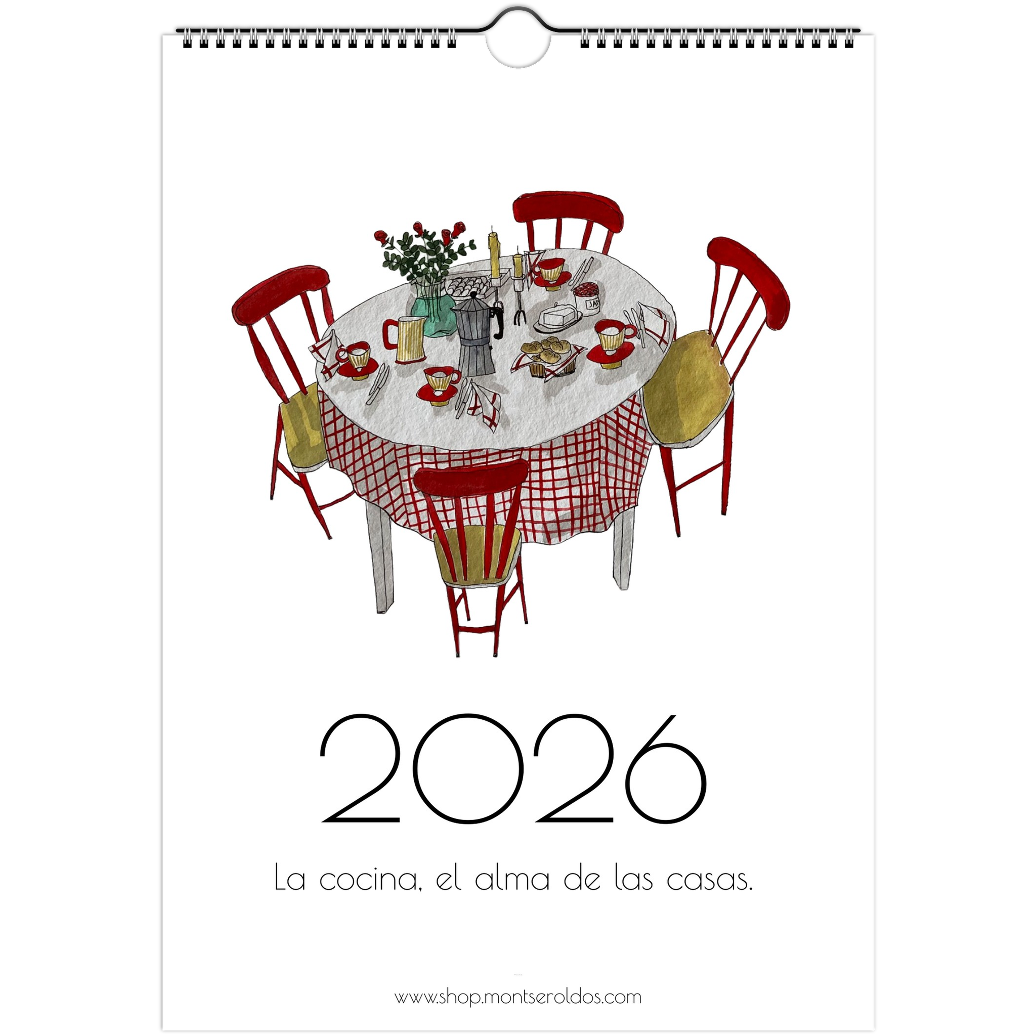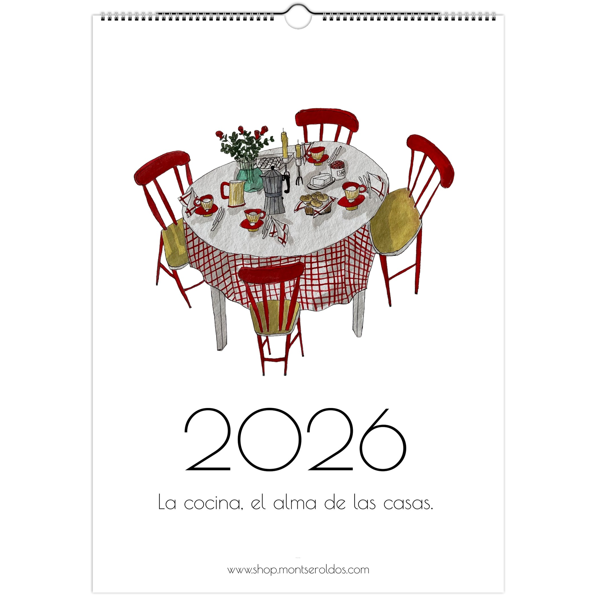 Calendario 2026. Con ilustraciones hechas con tinta y acuarela, en que el tema principal es la cocina. Ya lo dicen, la cocina es el alma de las casas.
