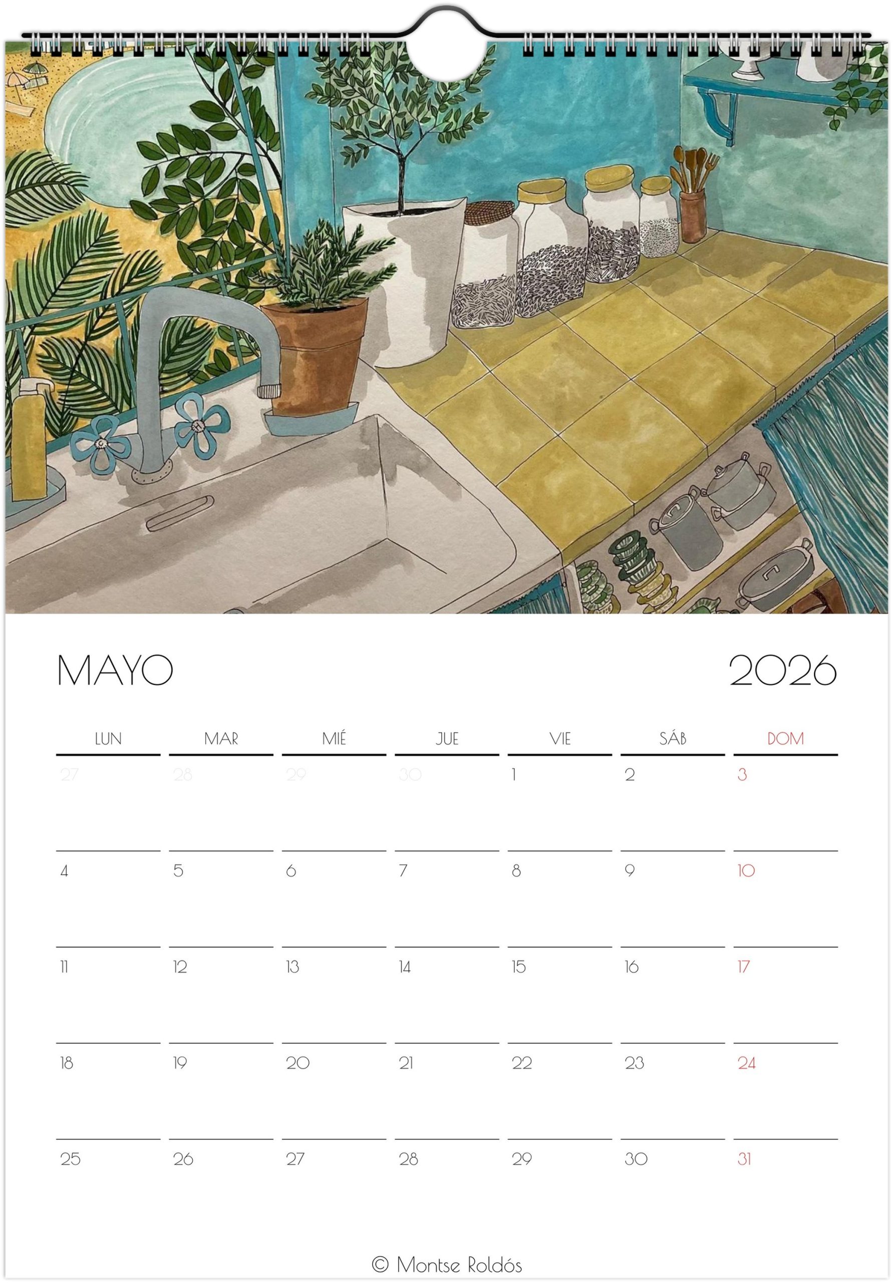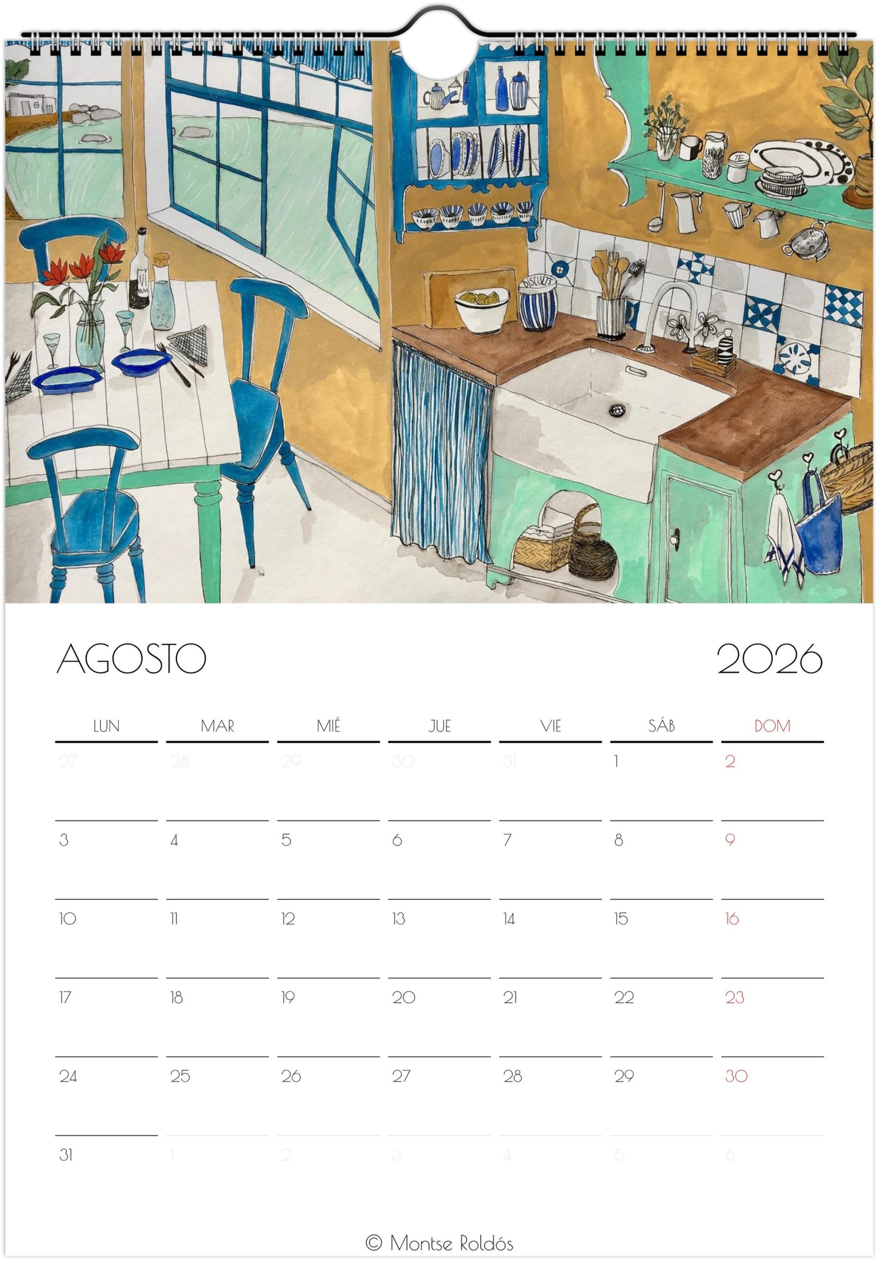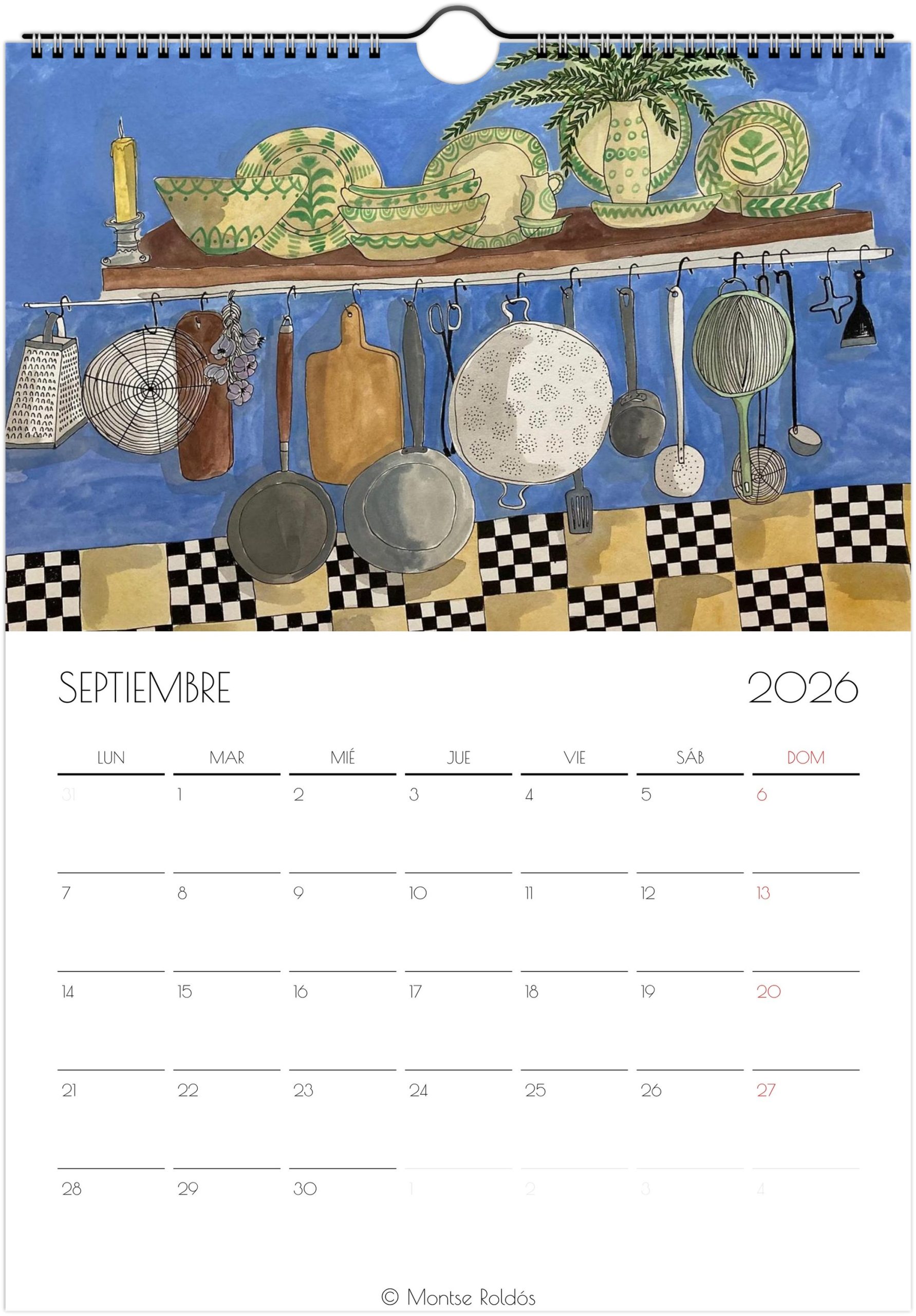 Calendario 2026. Con ilustraciones hechas con tinta y acuarela, en que el tema principal es la cocina. Ya lo dicen, la cocina es el alma de las casas.